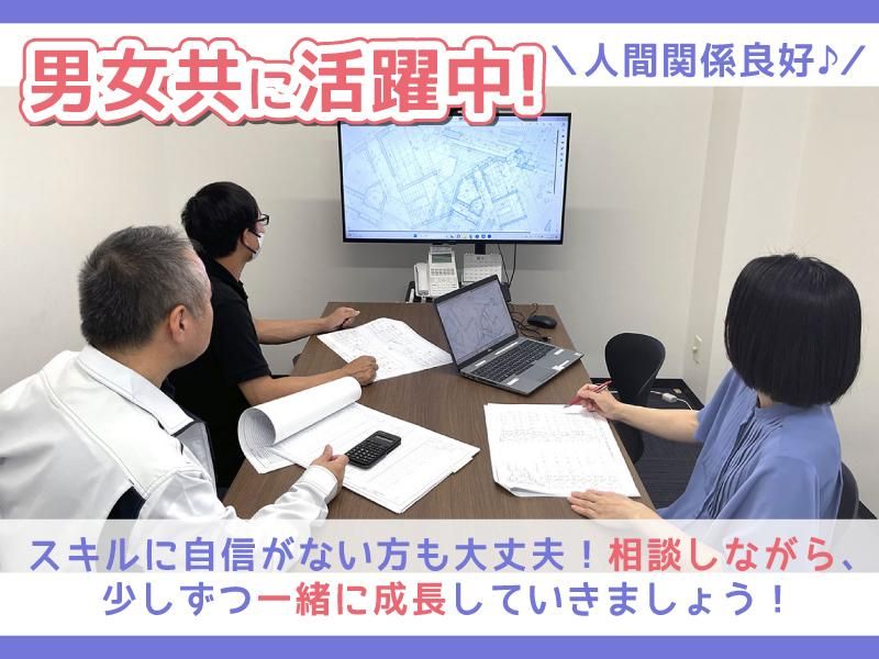仕事内容 公共施設の建築案件において、 打合せから図面作成、施工完了までを 一貫して手がける意匠設計のお仕事です。 今回はJw_cadの使用経験がある方を募集! 「CGソフト」や「BIM」の 使用経験がある方も歓迎します。 当社はBIMを導入しているため、 BIM・CADオペレーターの経験がある方も スキルを活かせる環境です。 RC造・S造の意匠設計において、 基本設計図・実施設計図などを Jw_cadで行うのが主な業務です。 他にも、発注者様との打ち合わせや 資料作成(Word・Excel)、 成果品のファイリング作業などもあり。 また、案件によっては3Dモデリングの作成も 担当していただきます。 ※ArchiCAD初心者の方でも 「覚えたい」「挑戦してみたい」という 前向きな意欲がある方は歓迎です! 納品前には、残業する社員もいますが 19時前に退社している社員がほとんどで 残業は少なめです。 ―――――――――――――――――――― 他、求人Point ■土日祝休み(有給も取りやすい◎) ■賞与年3回・昇給年1回 ■将来的にはリモートワークも可能 ■応募から入社まで、最短1週間可能! ―――――――――――――――――――― \ 平均「勤続年数」は、なんと16年 / 一緒に働く仲間として、 ささいな相談にも上司が耳を傾けたり 社長自ら「最近どう??」と気にかけて くれたりと、新しく入った方も居心地の いい環境で働けると思いますよ。 * “ One for all, All for one. ” 一人はみんなのために、 みんなは一つの目的のために。 同じ目標に向かって 自分の役割を果たすだけではなく 時には部門を越えて 力を合わせて取り組んでいます。 人間なのでミスすることもあるかと思います でもそれをカバーしあえる関係でありたいと 考えています。お互いを尊重し支え合う 姿勢を大切にしながらお仕事したいと 思っている方には向いているかも! ―――――――――――――――――――― ■ 福岡で「40年以上」の実績! 福岡に根付いて40年以上。 当社は官民ともに厚い信頼をいただき、 数多くの実績を重ねてきました。 庁舎や学校、病院などの設計を通じて、 幅広い分野の建築に携われる環境です。 一人ひとりが設計に全力で向き合い、 着実にスキルを磨いています! ■資格取得支援あり 入社後に資格取得する社員も多数。 リモートで受講可能な資格もあるので 仕事と勉強の両立しやすいのも◎ 試験前には業務配慮もあるので 会社全体で資格取得を応援しています! ■将来は在宅・リモートも可能! 設計業務に慣れて担当業務を一人で お任せできるようになれば、 リモート・在宅での勤務も可能です。