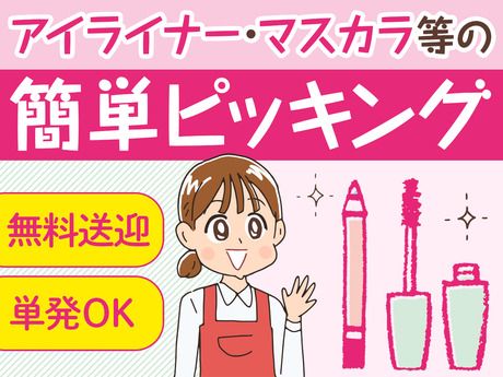 仕事内容 アイライナーやマスカラ等のピッキング作業 /////////////////////////////////////// (σ'u')σ【全額日払い・現金手渡しOK】 スグに働きたい方にもピッタリ◎ /////////////////////////////////////// キレイな倉庫内で、アイライナーやマスカラなどのコスメ商品のピッキング作業をお任せします! ◎片手で持てる軽量な商品が中心! ◎体力的な負担少なめ! 未経験の方でもすぐに覚えられるシンプルな作業です。 リストの指示通りに商品を取り出し、バーコードをピッとスキャンして出荷準備を行います。 丁寧な研修とサポート体制あり! 安心して働ける環境です♪ コツコツ作業が得意な方にオススメ☆ アピールポイント ===== ★<POINT>★ ===== ■全額日払い・現金手渡しOK(規定あり) ■単発・短期~長期まで自由自在! ■派遣デビューの方も大歓迎♪ ■未経験・お仕事ブランクOK ■履歴書・来社不要で登録可能♪ ■シフトはスマホから申請楽々! ■初勤務手当支給有り ================== あなたの理想の働き方をご相談ください♪ 「平日だけ働きたい」 「Wワークで土日だけ」 「子どものお迎えまでの時間がいい」 「効率よく稼げる夜勤がいい」 「長期休暇中だけフル勤務したい」など どんなご希望も相談OK! プライベートも大切にできる働き方を一緒に探しましょう! 「応募する」ボタンから、 お気軽にお問い合わせください☆彡 登録までの流れをご紹介 ┏━━━━━━━━━━┓ たったコレだけでOK! ┗━━━━━━━━━━┛ (1)『応募する』ボタンをタップ!*24時間OK! (2)メール記載のURLより登録会の予約をお願いします! (3)面談でしっかりご説明します!これで登録完了♪ ☆お友達との応募も大歓迎! ☆紹介可能案件数は業界TOPクラス! まずはかんたん登録♪ WEB面談OK◎ オンラインだけでは不安な方は、来社登録会も実施中です!