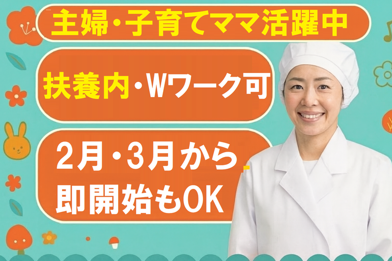 職場環境 人間関係のしがらみゼロ。 2026年4月に当社運営となり新規オープンする給食室で一緒にスタートしませんか。 主婦・子育てママなど20代、30代、40代、50代の女性がたくさん活躍中。家庭と両立しながら働ける、人気の給食室パート! ⭐美味しい給食ランチ付!