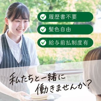 資格 学歴不問/経験不問 ※未経験・脱フリーター希望の方も大歓迎 ☆ 【歓迎】一つでも当てはまる方大歓迎! ◆初バイトの学生さん ◆ブランクのある主婦(夫)パートさん ◆時短勤務で無理なく働きたい方 ◆人と接することが好きな方 ◆おしゃれな空間で働きたい方 ◆趣味はカフェ巡り ◆コーヒーが好きな方 ◆長期で働きたい方 ◆ライフスタイルに合わせて柔軟に働きたい方
