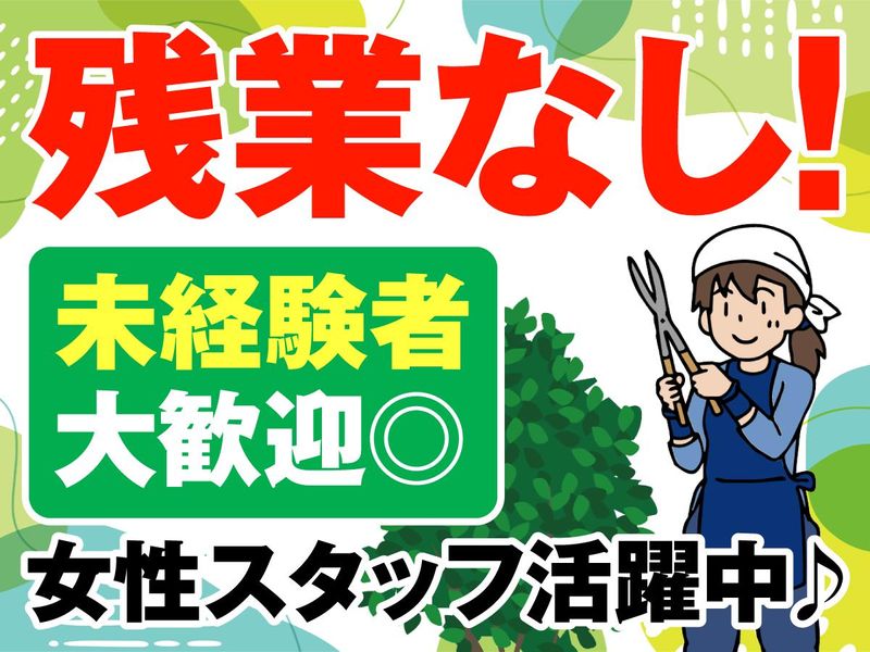 求めている人材 普通免許をお持ちの方 ・未経験者歓迎 ・無資格歓迎 ・Wワーク歓迎 ・ブランク歓迎 ・中高年活躍中 ・女性活躍中! ・学生・大学生歓迎 ・20代、30代、40代、50代活躍中です ・残業なしで働きたい方にピッタリです! コツコツ・モクモク作業が好きな方にもおすすめ <こんな方歓迎> 造園工事や剪定、庭造り、庭師、 草刈り作業等の経験がある方 ガーデニング、園芸、植木、庭園等に興味のある方