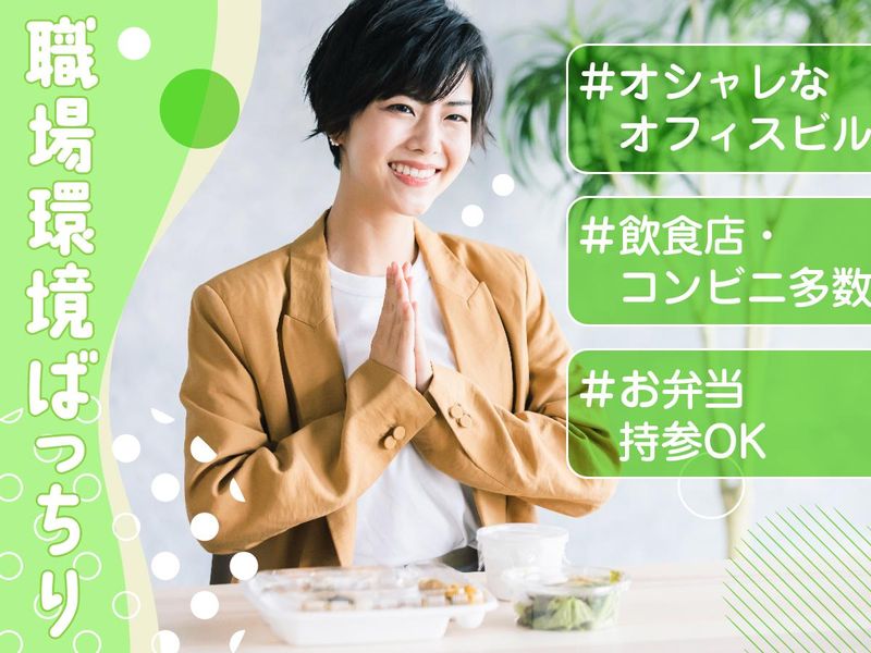 職場環境 勤務地はドラマの撮影にもよく使われるキレイなオフィスビル♪ ビル内には飲食店はもちろん、コンビニや銀行などもあり、とっても便利♪ 休憩室完備でお弁当持参も可能!(電子レンジ、冷蔵庫、自動販売機有) 喫煙所:喫煙所あり(屋内)
