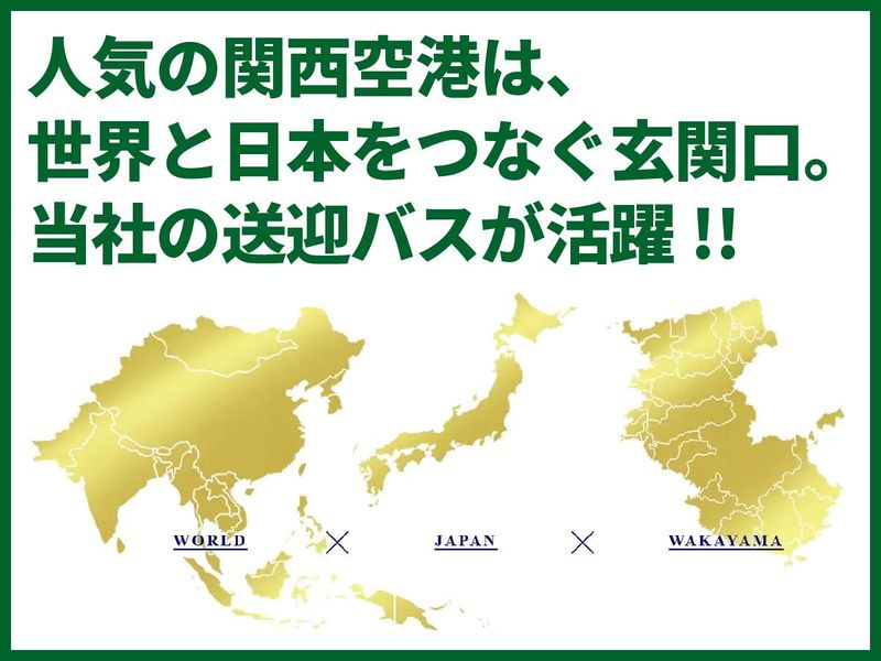 仕事内容 送迎バスの運転手になって、 地域に貢献できる仕事です。 ★- 堅実経営のユタカグループで働く。 未経験OK。研修制度あり。 -★ マイクロ・中型バス・大型バス(希望に よる)の送迎ドライバーを募集しています。 運行エリアは和歌山県内。 主要駅や関西空港、企業など、 安定した送迎案件が中心です。 無理な長距離や深夜の運行はありません。 誰かの“日常”を安全に運ぶことで、 地域の暮らしに欠かせない存在に。 毎日「ありがとう」を頂ける仕事です。 「ドライバーは初めて」という方も安心。 入社後はベテランによる研修を実施。 ルート確認、接遇、安全運転まで 一つずつ丁寧に身につけることが可能。 ✅未経験歓迎 ✅ブランクOK ✅異業種からの転職OK ユタカグループの一員として、 腰を据えて長く働ける職場環境です。 ※マイカー通勤OK ★- あなたがいなければ、地域は動かない。 -★ 和歌山は、程よいスケールの町。 海・山・川に囲まれた自然、 温泉、高野山、熊野古道、白浜、海の幸。 観光コンテンツの魅力に溢れています。 人との距離も近く、 喜びも、困りごとも、ちゃんと見える町。 安全・安心な送迎の先にあるのは、 人の表情、感謝の言葉、町のぬくもり。 自分の仕事が、誰かの役に 立っていることが実感できる。 それが、この仕事の一番のやりがい。 「ここで、人生を再出発したい」 そう決意して転職してくる方もいます。 転居を伴う入社も、可能な範囲で支援。 あなたの運転が、 今日もこの地域を動かします。 ★- “走るため”ではなく、 “支えるため”。創業70年超。 -★ 「地域創生」に交通は欠かせません。 住民の日常生活を支えるインフラであり、 地域経済、まちづくり、 コミュニティの要。 ユタカグループは1954年の創業以来、 輸送・観光・地域振興を軸に、 和歌山に根ざした事業を続けてきました。 ビジネス・観光利用のお客様だけでなく、 地元の学校、行政、冠婚葬祭企業など、 多くの安定した取引基盤があります。 グループ経営ならではの 多様性に富んだサービス展開も強み。 「移動」が地域を支え、未来をつくる。 その想いは創業以来変わっていません。 「地域の役に立つ仕事がしたい」 その気持ちがある方、 ぜひ一度お話ししませんか。