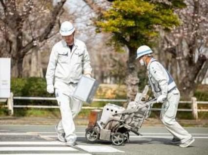 交通インフラを支える道路標示の現場作業員