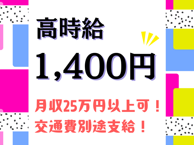 人気求人★募集再開!>>日勤・(土)日祝休み!時給1400円!未経験OK!お子さんの行事等お休みにも寛容な職場!