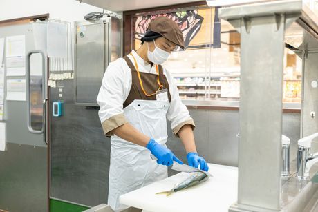仕事内容 ・お客様の「日常」を彩る仕事。 地域密着型スーパーで、 生鮮部門の未来を創りませんか? ・大手企業で安心・安定、 キャリアアップも目指せる! ・ゆくゆくは、部門長として マネジメントする立場を 目指していただきます! <クスリのアオキについて> 当社は、過去10年間で店舗数を 約4.8倍、売上高を約5.6倍に伸ばし、 業界トップクラスの成長率を誇っています。 その成長の原動力は、「ヘルス・ビューティー・ライフ・フード・調剤」 を融合させた独自の店舗づくり。お客様からは「アオキに行けば、一度に全ての買い物が済む」と大変好評をいただいており、 高齢化や過疎化が進む地域において、そのニーズはますます高まっています。 2026年までに1200店舗体制の実現を目指し、更なる事業拡大を推進するため、 当社の強みである生鮮部門の運営を 支えていただける新たなメンバーを募集します。 <社員区分別の特徴について> ■リージョナル社員 条件:本拠地から車で片道4時間以内 (高速道路を含む)のエリアで転勤可能な方 特徴:転勤の範囲に制限あり!社宅制度あり!引越費用不要! ※入社後、毎年1回ライフイベントに 合わせて働き方の変更申請が可能です! <主な仕事内容> まずは現場のお仕事から慣れて頂き、 その後は売場の管理からキャリアアップを目指してください。 -調理- お刺身のパック詰めやシャリにネタを乗せる などの簡単な軽作業や魚を捌いて切り身や、 刺身に加工するお仕事をお願いします。 働いているうちに魚をさばく技術が身につきますよ! (魚を〆る作業工程はございません) -商品の陳列/売り場管理- 豊富な商品を取り揃えた状態を保てるように、 品薄になってきた商品をその都度補充します。 -商品の発注/管理- チラシの掲載商品や季節商品などがあれば、 多めに発注できるように調整します。 -従業員の教育- お仕事に慣れてきたら他の従業員の方への マネジメント・売場管理をお願いしております! 【1日のスケジュール例と身につくスキル】 7:00 出勤し、日切れ商品チェック →値引廃棄管理のスキルが身につきます! 7:30 魚をさばき、切り身、刺身に加工 →捌き方、切り方、包丁の使い方、研ぎ方などのスキルが身につきます! 8:30 商品の陳列 9:00 お寿司製造、品出し →丸魚1匹から切身・刺身・寿司の調理・販売方法が覚えられます。 基本調理技術・商品知識は経験を積むことで年々上がります。 12:00 お昼休み(1時間しっかり休憩◎) 13:00 売場メンテナンス 15:00 品出し・発注 →売上・仕入れ・利益・人時生産性・人時売上高など店舗運営の基本が学べます! 16:00 退勤!残業ほぼなし! 【入社時期は、あなたのライフスタイルに合わせて決定!】 「すぐに働きたい!」「在職中なので、転職は数カ月先を考えている」 など、入社時期調整は柔軟に対応します。