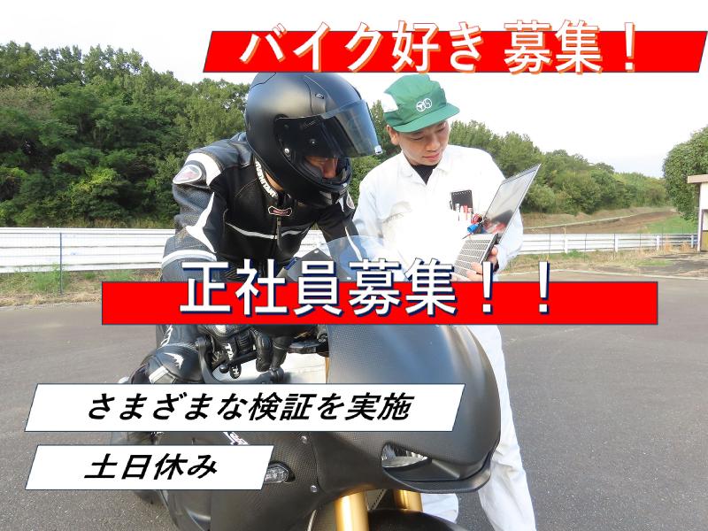 仕事内容: ≫≫ アピールポイント ≪ ≪ * 年間休日117日以上:毎年しっかりとお休みを取得していただけます! 【仕事内容】 2輪車、その他の性能評価試験や走行試験など、さまざまなテスト業務をお任せします。 <具体的には> * 実際の車両を使用してのテスト走行、商品検証 * 実験設備を用いて測定数値を収集 * エンジン/ミッションに単体性能評価 * 部品の評価など * 上記に付随する作業全般 車両の実走・検査・測定・データ収集・分析・解析という一貫した業務体制を通し高品質・安全でコストパフォーマンスに優れたサービスを追求しています。 今回、一緒に働く仲間を募集しております。 入社後は研修を行い、しっかりと学べる環境をご用意しております。 【入社後の流れ】 配属前に 安全・基礎知識の研修を行います。 (安全について、現場での機密情報の管理について学んでいただきます。) 配属先では先輩から業務を学んでいただきます。 ご応募お待ちしております! -------------------------------- 【職場環境】 和気あいあいとしたアットホームな職場です。 わからないことがあれば、新人の方でも聞きやすい環境です! -------------------------------- 【雇用形態】 正社員 【給与】 月給:19.0万円〜 ※試用期間あり(3ヶ月内) ※ご経験やスキルを考慮のうえ決定致します。 【応募条件】 <必須条件> * 普通自動車免許(AT限定不可) * 高卒以上の方 <歓迎条件> * チームワーク良く、仕事を進められる方 * 自動二輪免許をお持ちの方歓迎 * ブランクのある方歓迎 * 新しい技術にチャレンジしたい方 * ハローワークでお仕事探してる方も歓迎 【勤務時間】 8:30〜17:30(休憩1時間・労働 8時間) ・フレックス制 ・交替勤務 ※配属先により異なります。 【休日休暇】 週休2日制:(土・日・他) 年間休日:117日 ・GW休暇 ・夏季休暇 ・年末年始休暇 ・長期休暇あり
