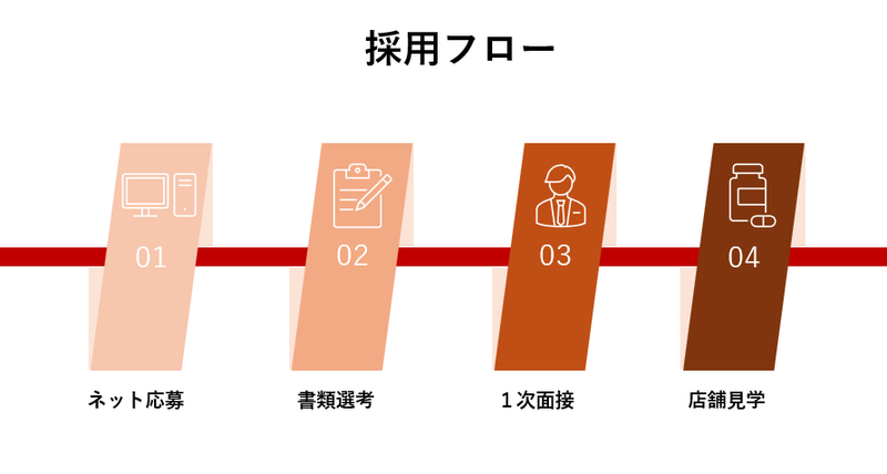 選考プロセス ここまでお読みいただきありがとうございます。 少しでも興味をお持ちいただけましたら、お気軽にご応募ください。 【応募後の流れ】 [1]WEBまたはお電話にてご応募 [2]面接 [3]採用 *応募から7営業日以内にご連絡いたします。 *応募者が多数の場合、ご連絡が遅れることがあります。 *面接日時を考慮いたしますので、お気軽にご相談ください。
