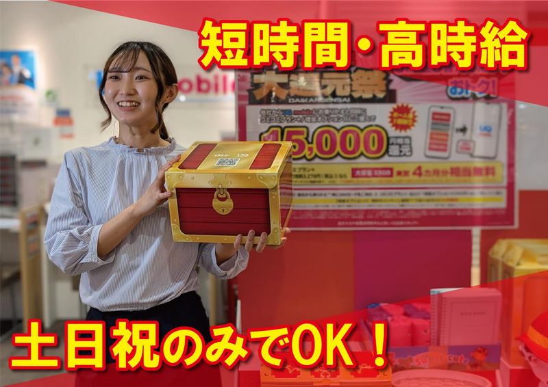 仕事内容 ショッピングモールなどで行っている 携帯電話イベントスタッフです! 抽選会やルーレットなどで イベント会場を盛り上げてお客様に 楽しんでいただくお仕事です! 【⭐お仕事の流れ⭐】 ―――――――――――――――――――― ①抽選会への参加の声かけや ビンゴカードなどの配布 ▼ ②抽選結果の確認、景品のお渡し ▼ ③アンケート参加の声かけから ショップスタッフへバトンタッチ ✅携帯に関する詳しい知識は不要です◎ ✅研修制度も充実◎ ✅1~4回目までは先輩スタッフが 同行してフォローします! ✅子供が好きな方や 人と話をするのが好きな方、 イベント事が好きな方にピッタリ⭐ 【勤務地は…】 ―――――――――――――――――――― 湘南エリア、相模原エリア、 横浜・川崎エリア、立川エリアの 商業施設となります。 勤務地は相談に応じます。 【⭐未経験者歓迎!⭐】 ―――――――――――――――――――― 充実の研修制度、メンター制度で 未経験者もしっかりとサポートします! 【⭐短時間でもしっかり稼げます!⭐】 ―――――――――――――――――――― 高時給なので週末のみの勤務でも しっかり稼げます! 【⭐働き方が選べます!⭐】 ―――――――――――――――――――― 会話力、プレゼン力を磨きたい方は 平日から勤務出来る 販売スタッフルートも選べます! 【⭐スキルアップが叶います!⭐】 ―――――――――――――――――――― お客様と触れ合っていくうちに自然と コミュニケーション力がUPします! これから就活や営業職への就職を 控えている方には特におすすめです! \\✨こんな方が活躍中!✨// ✅未経験者 ✅大学生、専門学生 ✅携帯販売経験者 ✅イベント経験者 ✅接客、サービス業の経験者 ✅フリーター ✅主婦・主夫さん