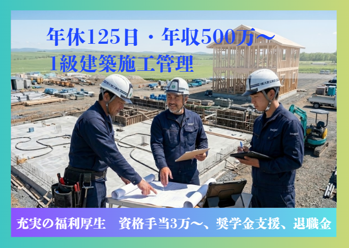 仕事内容 都会から中標津へ。 パパが転職を決めた理由は「環境」と「生活のゆとり」だった。 マンション暮らしだった頃は、「走らないで」「静かにして」が口癖だった。 帰宅は深夜で、休日は泥のように眠る日々。 でも、こちらに来てからは、パパも僕らも、のびのび過ごしている。 何より変わったのは、夕ご飯の時間だ。 家族みんなでテーブルを囲んで、今日あったことを話す。 特別なことじゃないけれど、ここに来てよかったな、と僕は思っている。 ⭐犬飼工務店なら、 その「理想」と「生活」が両立できます =================== 田舎暮らしには憧れるけど、 収入や将来が不安… そんな建設技術者の方へ。 1. 時間のゆとり:年間休日125日(完全土日祝休) 建設業界では異例の休日数です。 現場の分業を進め、残業も月平均10時間程度。 週末は知床や摩周湖へドライブ、庭でBBQ。ここではそれが「日常」です。 2. 経済的なゆとり:奨学金返還支援 & 住宅手当 引っ越しで一番不安なお金のこと。 私たちは若手・中堅社員の奨学金返済を会社が肩代わり(月最大3万円/規定あり)します。 さらに、都市部より圧倒的に安い家賃相場に加え、手厚い住宅手当(最大2万円)も支給。 「自由に使えるお金(可処分所得)」は、東京や大阪より増える社員も多いです。 3. 働きやすさ:令和3年新築のオフィス 「地方の建設会社=古い」イメージを捨ててください。 2021年に完成した新社屋は、最新設備と清潔な執務スペースを完備。 転勤もないため、腰を据えて「街のランドマーク」を作る誇りある仕事に没頭できます。 【具体的な業務内容】 官公庁・民間の建築現場における施工管理 ✅1ヶ月~1年程度の規模の現場 ✅出張なし、日帰りの現場です ■株式会社犬飼工務店について =================== 昭和32年の創業以来、地域に根差した 事業展開を行っています。 ワークライフバランスを重視した環境を 整えているため、これまでの経験を 活かしながら「時間と心」に余裕を持って 働くことが可能です。 地元に貢献しながら、技術と経験を 次世代に伝えていく。 そんなやりがいのある仕事です。 明るい雰囲気の職場で、あなたの経験を 活かしてみませんか?