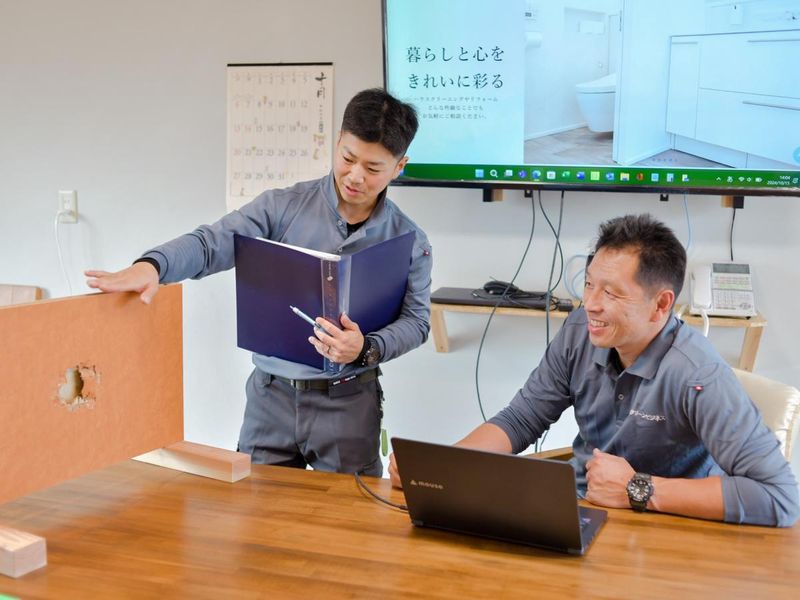 職場環境 駐車場を完備していますので 車での通勤も可能です。 基本的には現場に出ていますが、 オフィスに戻れば同僚や内勤さんが 温かく迎えてくれます。 若い社長のため今時の働き方を応援しており 社員一人ひとりが安心して長く働けることも 当社の魅力のひとつです。 喫煙所:喫煙所あり(屋内) 屋内原則禁煙(喫煙専用室あり)