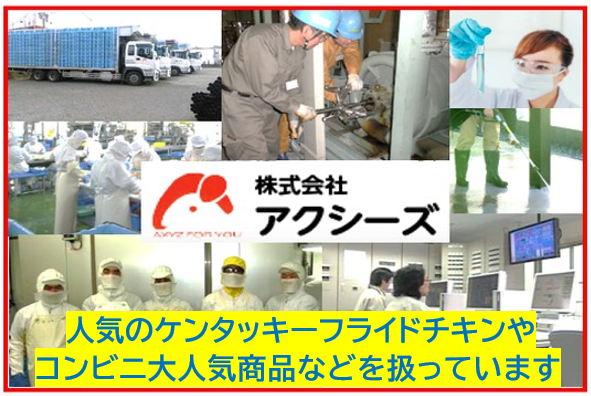 ■応募後の流れ ここまでお読みいただきありがとうございます。 Webまたは電話よりご応募ください。 Webから応募された場合は、後日こちらからご連絡いたします。 【株式会社城山サービス(アクシーズグループ)】 鹿児島を拠点に、鶏肉や鶏肉加工食品の製造・販売を手掛けている当社。 飼育から加工、販売までの体制を自社内に整備した『完全なるインテグレーション(一貫生産)』が私たちの最大のこだわりです。 主な取引先はケンタッキーフライドチキン様、ニチレイ様、日本ハム様などの大手企業です。 東京証券取引所に株式上場も果たしており、更なる発展を目指しております。 事業内容:鶏肉およびその加工食品の製造販売 設立:昭和37年11月13日 資本金:4億5,237万円 従業員数(グループ連結) 2024年6月 1,320名 2023年6月 1,247名 2022年6月 1,263名 2021年6月 1,303名 売上高(グループ連結) 2024年6月期 258億3,600万円 2023年6月期 241億100万円 2022年6月期 217億2,500万円 2021年6月期 211億6,000万円 事業所本社/鹿児島市 事務所/吉田事務所、串良事務所 工場/帖佐工場、川上工場、宮之城工場、宮之城第2工場、薩摩工場、鹿児島工場 事業所/南栄事業所 子会社: 株式会社アクシーズフーズ(KFC店舗及びピザハット店舗の外食事業) 錦江湾飼料株式会社(当社向けの飼料製造) 株式会社アクシーズケミカル(シラスバルーン・ゼオライト製品および無化学肥料の販売) 株式会社アイエムポートリー(肥育農場の運営) 株式会社南九州畜産 〒890-0014 鹿児島市草牟田二丁目1番8号 TEL: 099-223-7385 担当: 経営企画室 採用担当 E-mail: jinji@axyz-grp.co.jp URL: http://www.axyz-grp.co.jp 【こんな求人をお探しの方にもおすすめ】 ・倉庫内作業、現場作業、ライン作業、ピッキング、パッキング、梱包、仕分けなどの求人をお探しの方 ・製造業、加工、マシンオペレーター、品質管理、倉庫管理、検査、検品などの求人をお探しの方にもおすすめ ・ハローワークでお仕事をお探しの方も歓迎 ■応募受付電話番号 099-223-7385 ■個人情報の取扱いについて ご提供いただいた個人情報は、採用選考及び結果等の通知・連絡の為に利用いたします。 それ以外の利用目的または法令等に基づく要請の範囲を超えた利用はいたしません。