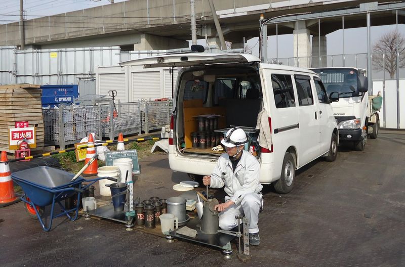 コンクリートの品質検査スタッフ