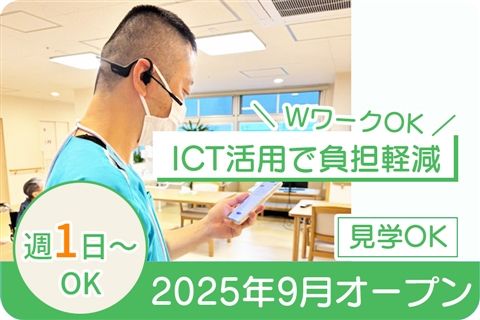 週1回以上で相談OK♪1夜勤2万9200円~3万0800円★Wワーク可!2025年9月オープンの新しい施設◇ICT活用で負担軽減【印旛郡・酒々井駅/京成酒々井駅・特養・介護職、夜勤アルバイト】