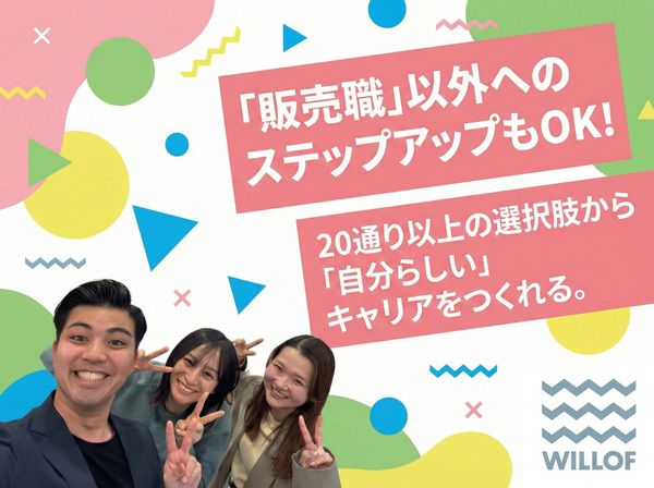 仕事内容 \\20代のメンバー中心に活躍中!// 東証プライム上場企業グループの安定基盤◎ 「健康経営優良法人2025」にも認定! * … * … * … * …* … * … * ・残業1日15分以内 ・完全週休2日制 ・転勤なし ・賞与年2回 ・産休・育休の復帰実績多数 ・将来のブランド変更もOK * … * … * … * …* … * … * 「接客の仕事は大好き。 でも、将来の生活も大切にしたい...」 そんな素直な気持ちを尊重し、 あなたらしい働き方を応援します! ウィルオブ・ワークがご用意するのは、 あなたの“好き”を一生ものの仕事に変える 「安定したキャリア」です! ―・・―・・―・・―・・―・・―・・―・・― ☆ 仕事内容について ☆ ―・・―・・―・・―・・―・・―・・―・・― 百貨店やファッションビル内の 店舗で、接客販売をお任せします。 具体的には… ・来店したお客様への接客 ・レジ対応やラッピング ・在庫のチェックや発注 ・SALE準備(POP設置等) ・売上アップのアイデア出し ―・・―・・―・・―・・―・・―・・―・・― ☆ 店舗の販促もサポート! ☆ ―・・―・・―・・―・・―・・―・・―・・― 接客業務だけでなく、売上アップの施策を考えます。 例えば… ・他店舗の成功事例をリサーチ ・お客様が手に取りやすいディスプレイ作成 と、やれることはたくさん! あなたのアイデアをお待ちしています。 ―・・―・・―・・―・・―・・―・・―・・― ☆ 産休・育休制度充実 ☆ ―・・―・・―・・―・・―・・―・・―・・― 産休・育休制度の他、結婚祝い金(2~3万円)、出産祝い金(10万円/1子)等 ライフイベントに関するサポートも充実♪ 「戻れる場所」があるから、心おきなくお休みに入れます。 復帰後も、時短勤務などで無理なく家庭と両立している先輩多数! ―・・―・・―・・―・・―・・―・・―・・― ☆ キャリアパス20通り以上 ☆ ―・・―・・―・・―・・―・・―・・―・・― 研修担当のトレーナー、人事、リーダー、支店長などステップアップ先は豊富です! 本社で働く社員の90%以上が販売職からのステップアップ◎ 販売職以外にもチャレンジしながら、長く安定して働ける環境を整えています♪ ━━━━━━━━━━━━━━━ ※こちらの求人は〈無期雇用派遣〉です※ 無期雇用派遣とは「株式会社ウィルオブ・ワーク」の正社員として入社し、 取引先企業様の店舗にて勤務する働き方です。 ━━━━━━━━━━━━━━━