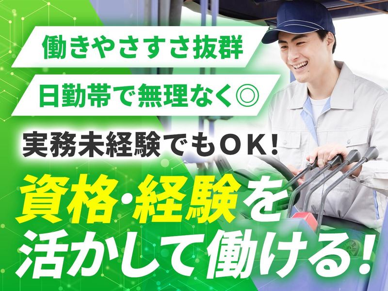 仕事内容 ====\ ✨CHECK POINT✨ /==== ✅フォークリフト免許必須&経験者歓迎! ✅日勤帯の安定勤務で無理なく働ける ✅週休2日制で私生活&プライベート充実! ✅ブランクもOK!基礎から丁寧にサポート ✅マイカー通勤OK!駐車場完備◎ ==================== ――――――― ◆業務内容 ――――――― 倉庫内での飲食料品の 入出庫作業を担当していただきます。 フォークリフトを使って商品を安全かつ スムーズに運搬するお仕事です。 経験が浅い方やブランクのある方も、 先輩スタッフのフォロー体制が 整っているため安心してスタートできます◎ ――――――――― ◆具体的には… ――――――――― 【1】飲食料品のパレット積み下ろし・移動 【2】入出庫データの確認・整理 【3】倉庫内での商品管理および整理 【4】フォークリフトでの安全運搬作業 シンプルな作業なので、 フォークリフト操作に慣れている方なら スムーズにご活躍いただけます。 「安定した収入を得ながら、日勤帯で無理なく働きたい」そんな方にピッタリのお仕事です!