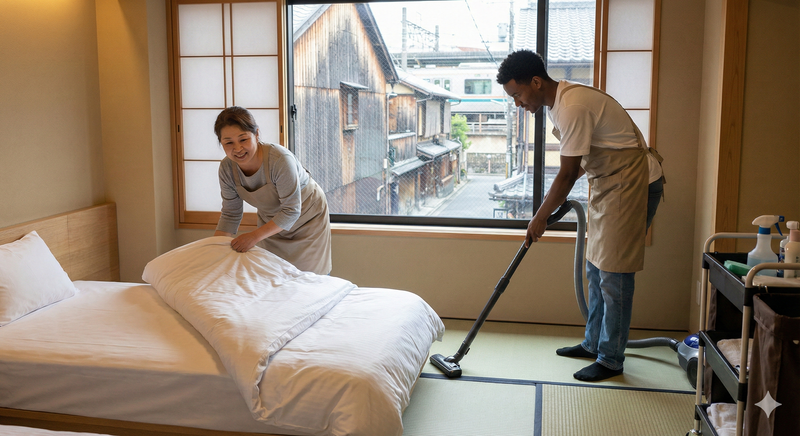 接客なしで気楽!客室清掃で時給1200円
