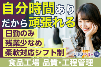 日勤固定で生活リズムも安定、土日休みも可能!食品工場経験者歓迎、品質・工程管理のお仕事です。祝日休みも相談できる柔軟なシフト制で、長く働ける環境です★