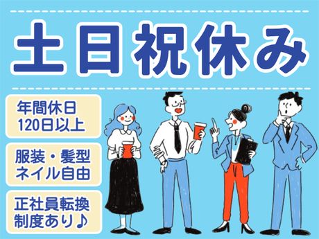 仕事内容 \ おすすめPOINT / ◎事務経験を活かし、社内を支えるやりがいのあるポジション ◎土日祝休み・安定した勤務時間で、仕事とプライベートの両立 ◎分からないことはすぐに相談できる体制 ◎資格取得支援制度など、将来を見据えて長期就業可能 ◎快適なオフィス環境と充実した福利厚生 ――――――――― ◆ お仕事内容 ◆ ――――――――― OASISひろば21内にて、 社内で働く従業員を支える事務業務をお任せします。 各種案件の担当者や本社、他部署と連携しながら、 バックオフィス業務全般に携わっていただくポジションです。 【主な業務内容】 ■ 総務・庶務業務 ・電話対応(代表電話、社内、応募者、取引先など) ・受付対応(来客、応募者、取引業者など) ・人事労務関連業務(書類チェック対応 等) ・経理関連業務(経費精算処理、請求書の経理依頼対応 等) ・庶務業務(郵便物対応、備品補充、センター内設備管理) ・従業員からの各種問い合わせ対応(人事労務・経理関連) ■ 採用関連業務 ・求人媒体原稿の作成・確認 ・応募者対応、面接対応 ・入社手続きに関する対応 ・協力会社のとの連携対応 業務は他拠点とも連携して進めており、 すでに業務を把握しているメンバーが在籍しています。 OJTを通じて段階的に業務を習得でき、 不明点もすぐに相談・確認できる環境です。 土日祝休みのフルタイム勤務で、 長期的に安定して働けるお仕事です。 <業務内容>変更の範囲 会社の定める業務内容 \ 採用担当より / 社内で働くスタッフをバックオフィスから支えるポジションです。 一つひとつの業務は地道ですが、 その積み重ねが働きやすい職場づくりにつながっています。 業務の分からないことは すぐに相談できる環境ですので、 これまでの事務経験を無理なく活かしながら、 安心して働いていただけます。 勤務時間や休日制度も整っており、 長く続けやすいのも魅力のひとつです。 また、ハロウィンやクリスマスの時期には、 センター内の飾りつけを楽しむなど、 和やかな雰囲気も大切にしています。 私たちと一緒に、 気持ちよく働ける職場を支えていきませんか。 ご応募をお待ちしています。 「第2回おおいたワーク・ライフ・バランス推進優良企業」表彰受賞企業 「おおいた子育て応援団(しごと子育てサポート企業)」認証企業 \ 研修内容 / 入社後は庶務業務を中心にOJTで業務を習得。 隣席に業務経験者がいるため、随時相談可能です。 当社センターの総務(庶務等)および採用関連業務をお任せします。