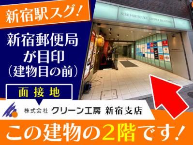選考プロセス 【応募】→【面接】→【内定】 ◎現在就業中の方は、面接日や入社日などご相談に応じます。 ◎面接は新宿駅徒歩4分の新宿支店にて行います。 〒160-0023 東京都新宿区西新宿1-13-12 西新宿昭和ビル2階 ◎電話でのご応募やお問い合わせもOK!新宿支店の採用担当宛にご連絡ください。 「清掃スタッフの応募」とお伝えいただくとスムーズに担当にお繋ぎできると思います。 面接でお会いする事を楽しみにしています!! 【面接地・登録地】 株式会社クリーン工房 新宿支店 所在地:東京都新宿区西新宿1-13-12 西新宿昭和ビル2階 担当者:採用担当 電話番号:03-5990-5400