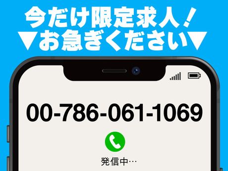 選考プロセス 電話応募で、その場で研修日時のご予約ができます。 あっという間にお仕事決定♪ ▼ご応募はこちらから▼ 【00-786-061-1069】 【問合せ先について】 問合せ先:0078-6061-1069 <TEL受付時間>平日9:00~17:00、それ以外の時間帯はWEBにて24時間受付中! 応募方法 ▼ご応募はこちらから▼ 【00-786-061-1069】 面接なし!来社なし!電話1本で完結! 簡単な確認のみで即内定! 自宅にいながら内定GET&履歴書不要!