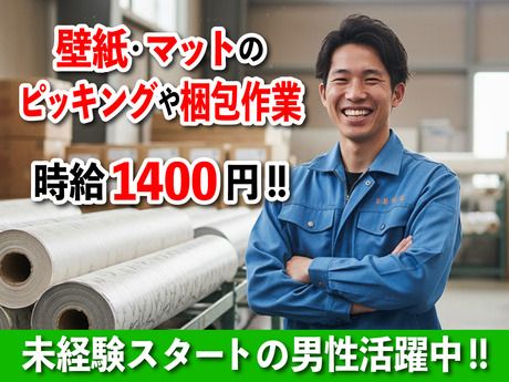 ★壁紙・マットのピッキングや梱包作業★未経験でも時給1400円スタート!