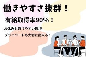 インフォメーション 《土日祝休み×年休120日!》自慢の教育体制があるので、工場ワークが初めての方も大歓迎!”大手製造業の縁の下の力持ち”としてあなたも当社で活躍してみませんか? ◇いちからの挑戦を手厚い研修& サポートで応援◇ 本社での研修や通信講座、外部セミナーで あったり、研修会への参加など、それぞれの スキルに合わせて、様々な研修の受講が可能 です。更に、業務に関連して会社から認めら れた場合、会社が費用を負担します! また、資格取得支援制度もあり、業務に 必要な資格や免許は入社後全て会社負担で 取得できます。 アピールポイント <ワークライフバランスもばっちり> 日勤のみで土日祝がお休みなので、 しっかり家族との時間や趣味の時間を 楽しめます。有給休暇の取りやすさ、 スタッフさんが相談しやすい環境づくり にも力を入れています。