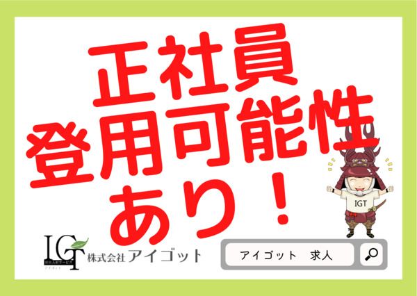 キャッチコピー ⭐️未経験の方歓迎 覚えやすい軽作業のお仕事 アピールポイント 正社員雇用アリ! 即日就業可能♪あなたに合った場所で働けます♪ 雇用形態 派遣社員 掲載企業名 株式会社アイゴット 応募受付先電話番号 0594-41-4520 【JOYPLUS】三重県内最高水準の福利厚生サービス 福利厚生サービスを展開する株式会社ベネフィット・ワン。 同社が手掛ける会員制のライフサポートサービスが「ベネフィット・ステーション」です。 そのサービスが利用できる『JOYPLUS』は当社グループ起業で働くスタッフさんなら全員利用可能。 旅行、レジャー、エンタメ、美容、グルメ、スポーツ、育児、教育、介護など様々なカテゴリーのサービスを使うことができます。 ここまで充実したサービスを提供できるのは、三重県内でも数社しかありません。 みなさんも、ぜひ活用してくださいね。 ゚*.。.*゚*.。.*゚*.。.*゚*.。.*゚* 【弊社登録スタッフはこんな方が働いています!】 「集中してガッツリ働きたい」や、 「高時給で安定収入がほしい!」など、 様々な理由で働いている方が多数います! ちなみに弊社登録スタッフの前職は、 パチンコ店員・清掃員・飲食店スタッフ等、様々! 面接時に派遣の不安な点を教えてください! 弊社スタッフがしっかり払拭します。 \こんな方にもオススメ/ 軽作業未経験の方 10代・20代・30代・40代から中高年まで活躍している職場を探している方 派遣スタッフの経験を活かしたい方 ブランク復帰できる仕事を探している方 セカンドキャリアとしてのお仕事をお探しの方 フォークリフト免許や玉掛け免許をお持ちの方 高収入・高時給のお仕事をお探しの方 コンビニ・スーパー・飲食店・ファストフード店での勤務経験を活かしたい方 現場作業の経験がある方 建築業界に興味がある方 \こんなお仕事を探されている方にピッタリ/ 仕分けやピッキングなどの倉庫内作業 箱詰めやシール貼りなどのコツコツもくもく軽作業 梱包や包装、加工などの工場製造や機械オペレータ 食品工場(肉・鮮魚・野菜・惣菜)での盛り付け・調理・材料カット ラインオペレーターなどの工場作業員 簡単な工具を使った組立・組み付けなどの工場内作業 溶接や塗装などの工場スタッフ <キーワードで探している方に!> 【シフト重視!】 長期歓迎、シフト自由、平日のみOK、週4日以上OK、 固定シフト制、シフト制、早朝・早番・午後・夕方・フルタイム歓迎など! 【待遇重視!】 日払いOK、交通費全額支給、交通費支給、社員登用あり、長期休暇あり、 転勤なし、転居を伴う異動なし、職種変更なし、バイク通勤OK、車通勤OK、 髪型・髪色自由、ひげOK、ネイルOK、ピアスOK、制服ありなど! 【働き方重視!】 未経験者歓迎、業界未経験者歓迎、経験者歓迎、有資格者歓迎、 副業・WワークOK、ブランクOK、フリーター歓迎、即日勤務OK、 友達と応募OK、40代以上応募可、50代以上応募可、など! 本案件に合わない内容もございます。 ご希望される待遇があれば、できる限り近しい案件をご紹介します! 本案件と関係なくても、お気軽にお問い合わせ下さい! 企業情報(備考) 企業名:株式会社アイゴット 事業内容:●労働者派遣事業(派遣許可番号 派24-300347) ●有料職業紹介事業(24-ユ-300230) ●施工仲介事業 ●緑化レンタル・販売事業 ●業務請負 資本金:2,000万円 URL:https://ngp-grp.co.jp/igt/index.html 株式会社アイゴット 設立日 2015/3 事業内容 ●労働者派遣事業(派遣許可番号 派24-300347) ●有料職業紹介事業(24-ユ-300230) ●システム運営 ●ホームページ製作 URL https://ngp-grp.co.jp/igt/index.html Instagram https://www.instagram.com/ngp_igot/?hl=ja 【こんな検索をされている方にオススメです】 #主婦・主夫歓迎 #学生歓迎 #ブランクOK #経験者歓迎 #有資格者歓迎 #未経験者歓迎 #経験不問 #有資格者歓迎 #未経験者歓迎 #経験不問 #学歴不問 #長期 #交通費支給 #禁煙・分煙 #車通勤OK #バイク通勤OK
