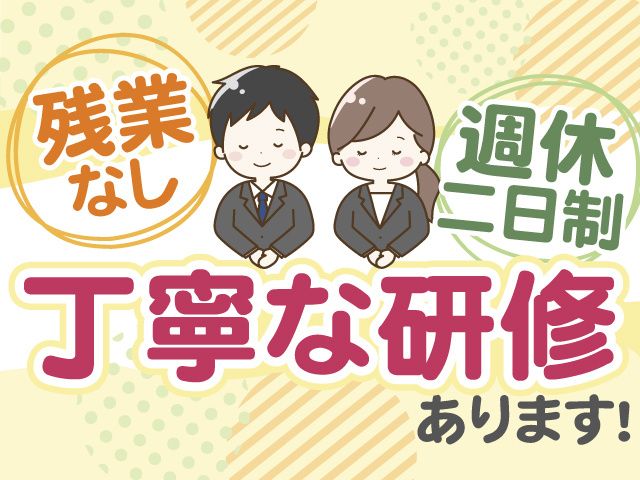 仕事内容 未経験から冠婚葬祭アドバイザーへ! ゆくゆくは幹部候補も目指せます! あなたのやる気次第でステップアップが可能です ◎未経験から正社員採用 ◎残業ほぼなし ◎週休二日制 【 冠婚葬祭アドバイザーとは 】 冠婚葬祭に関するイベントを会員様に向けてご案内します。 冠婚葬祭はどなたも経験が少ないのが当たり前。 分からないこと、不安なことをひとつひとつ解消していく大切なお仕事です。 「結婚式をするのにどのぐらいかかるの?」 「お葬式って何をすればいいの?」 など、会員様の疑問や相談にお答えし、不安を解消していきます。 お客様に合ったイベントのご案内なども行います。 この業界は景気に左右されないため、長期安定で働けるのがポイント! 会員様の大切な瞬間に携わるやりがいのあるお仕事です。 【 入社後の流れ 】 まずは座学研修からスタート! 冠婚葬祭に関する知識を学んだら現場研修を行います。 丁寧にお教えしていきますので、未経験の方も安心です。 \ 働きやすいポイント / 【休日】週休二日制で無理なく働ける 【勤務】残業なし!定時(17時)退社がほとんど! 【経験】業界未経験でも研修があるから安心! 【転職】異業種からの転職者も多数活躍中! 【将来】ゆくゆくは幹部候補も目指せます! 当社では40代・50代の男女が多数活躍中! ミドル世代の方も元気に活躍しています。 まずはお気軽にお問い合わせ・ご応募ください!