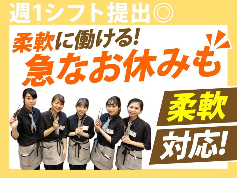 シフト制 勤務時間詳細 【ランチ】10:30~14:30(14:00可) 【ディナー】17:00~22:00 ★週3日〜、1日4時間〜ご相談下さい ★シフトは1週間ごと提出 ★授業・サークル・テストなど考慮 ★「子供が熱で…」など急な変更にも柔軟対応します!