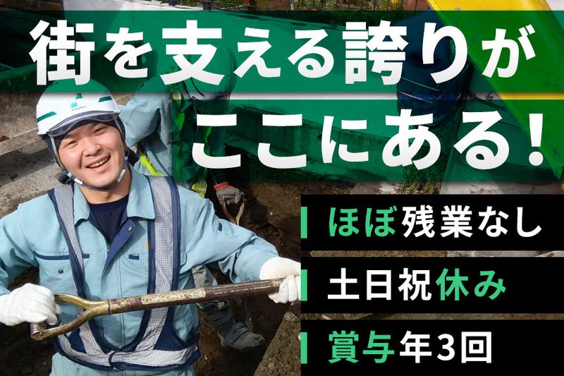 【アピールポイント】 下水道工事会社の現場作業員を正社員募集! ●未経験でも月30万円~ ●年3回の賞与あり ●土日祝休み ●寮社宅完備(Wi-Fi付き) 充実の研修・資格取得制度でキャリアアップを応援します!
