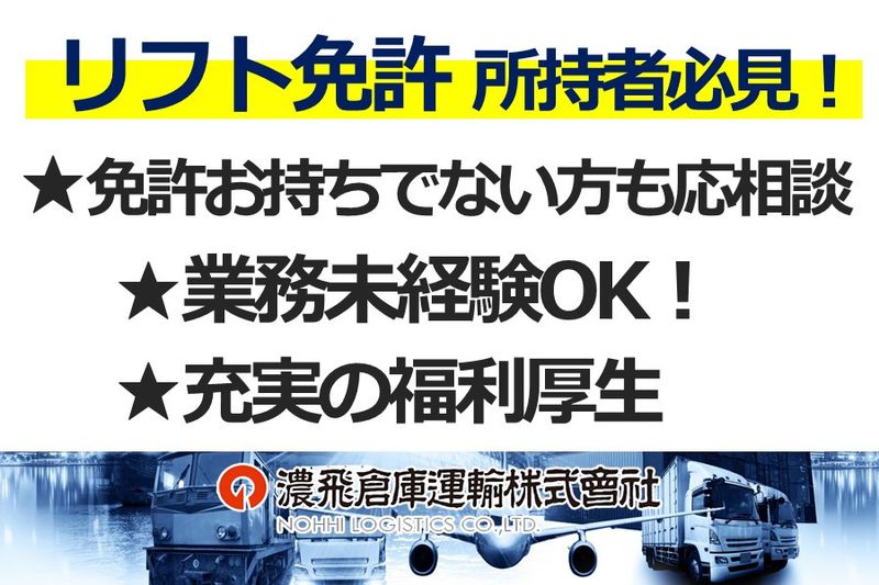 【仕事内容】 フォークリフト等の機械を使用して倉庫への入庫や在庫管理、出庫を行います。 【こんなお仕事をお任せします】 輸入コンテナからの荷降ろし、庫内への入庫、庫内整理・在庫管理、出庫業務があります。 ・取り扱う品種は繊維類、家電製品、雑貨など様々です。 【アピールポイント】 ■安心安定企業 当社は岐阜で創立し、倉庫、輸送、国際物流などを手がけ100年を超える実績を持つ老舗の物流企業です。 ■正社員として活躍を! 正社員として安定した就業が可能です。 ■アットホームな職場環境 20名程度の従業員が在籍している営業所です ■新生活も安心、寮・社宅あり 営業所の近くに、入居可能な会社の寮・社宅があります。 【求人ID-NH03】