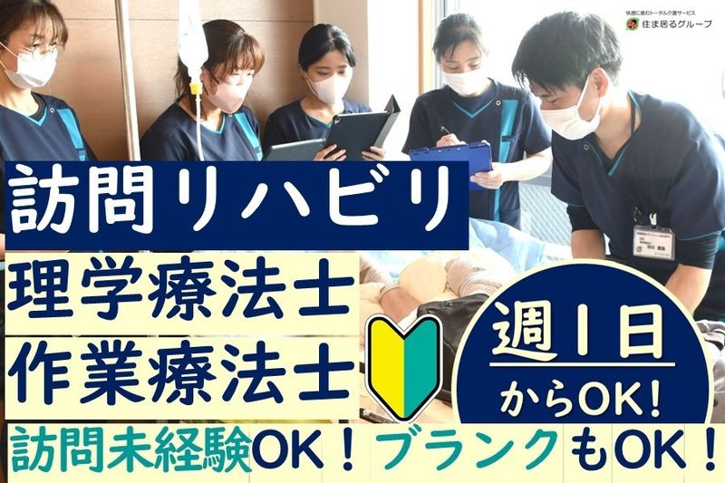 【仕事内容】 週1日からOK!1日3時間からOK!Wワーク・副業もOK!希望の勤務日・時間ご相談ください! 訪問リハビリが「はじめて」という未経験の方も大歓迎!ブランクある方ももちろん大歓迎!20代~50代の男女活躍中! ■主なお仕事内容 併設の有料老人ホームへの訪問リハビリ業務が中心です。 ・主治医に報告するための健康状態チェックと記録 (体温・血圧・脈拍・呼吸など) ・指示書に基づいたリハビリ対応 ・健康に関するアドバイス ・利用者様、ご家族様のメンタルサポート など ◎一部訪問エリア 多治見市・土岐市が中心 ◎訪問件数 1日平均して4〜5件訪問(勤務時間によって異なります) ■こんな方にオススメ ・人間関係が良い会社で働きたい ・仕事もプライベートも充実させたい ・ご利用者様と一人一人向き合いたい ・将来性のある会社で活躍したい ■実務未経験の方も歓迎です 先輩スタッフが、一から丁寧にサポートします。ブランクのある方も、研修やフォローがしっかりしているのでご安心ください。 スキルアップにつながる勉強会やカンファレンスなども充実しています。(残業はほとんどなく、家庭・プライベートとの両立も安心です) ■住ま居るグループについて 株式会社 YUKAIGO・株式会社 快GO TOKAI・株式会社すまいるの「住ま居るグループ」では、居宅介護支援事業所、グループホーム、 住宅型有料老人ホーム、デイサービス、ヘルパーステーション、訪問看護ステーション、福祉用具 販売・貸与を多治見市、土岐市で展開しております。 地域の皆さまや働く職員やそのご家族を素敵な「笑顔」にできるように。 2024年10月には、住宅型有料老人ホームとしては3施設目となる「住宅型有料老人ホーム住ま居るメディカ 土岐」をオープン。 よりたくさんの方に喜んでいただけるように事業を拡大しております。 まずは、施設や職場の様子を見に来てみませんか? まずは、『詳しいお話を聞きたい』『会社・事業所・仕事の様子を見学したい』といったご希望もお気軽にご相談ください。 お問い合わせ・ご応募お待ちしております。