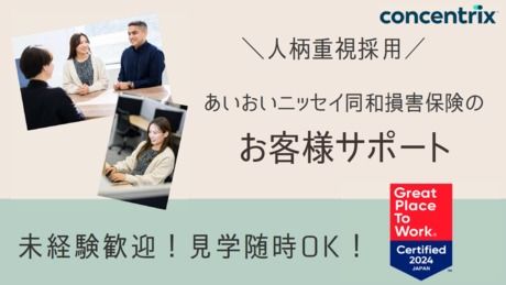 仕事内容 【 仕事内容について 】 大手損害保険会社でのお仕事です。 すでにご契約をいただいているお客様が ご自身の契約内容などを照会できるWEBサイトの 使い方などを電話でご案内をします。 事前の知識や経験は一切不要です。 【 具体的には 】 「契約者向け専用サイトにログインしたいのですが初期パスワードは何ですか?」 「自分のIDやパスワードはどこに書いてありますか?」 「海外旅行保険は旅行の何日前から申し込みできますか?」 「自動車保険の利用条件は何ですか?」 などのお問い合わせに対応をします。 ※お問い合わせ内容別にマニュアルがあるので、 それを読みながらご案内すればOKです 1時間で約2~3件ほどのお電話に対応します。 1本に対する対応時間はだいたい14分程度。 次から次に電話対応に追われることはなく、 お客様お一人おひとり、ゆっくりと丁寧な対応ができます! 慌てずじっくりと働けるので、 未経験スタートの方も無理なく働ける環境です! 【 研修について 】 就業開始後、まずは研修からスタートします。 ●保険についての基礎知識 ●ケース別のご案内方法 ●トークマナー など、イチからお教えします。 研修修了後も、 分からないことはいつでも近くの先輩スタッフに相談できます! 【 こんな方が活躍しています 】 ●別業界から転職をした未経験の方 ●子育てがひと段落つき、社会復帰をしたい主婦の方 ●対応件数に追われずお客様一人ひとりと向き合いたいコールセンター経験者 保険・コールセンター経験は一切不問! もちろん経験のある方も大歓迎です!! ※「産前産後休暇」や「育児休業」 などの育児支援制度も完備。 子育て世代の方でも無理なく働き続けることができます。 【 正社員登用の道もあり 】 ■限定正社員登用制度(エリア/プロジェクト) 年に2回、最短入社半年よりチャレンジ可能。 希望する多くの方が登用されています。(賞与あり、福利厚生の拡充) 【 日本コンセントリクス株式会社について 】 当社は年齢や性別によらない公平・公正な評価制度/幸福度の高さについて、 外部からも高評価をいただき、数多くの受賞をしております。 ■Great place to work /働きがいのある会社 認定 ■Well-being CUSTOMER CENTER AWARD(2024/2023) 特に、「働きがいのある会社」として ★2年連続★世界的な調査機関GPTWから正式に認定されました。 働く人へのアンケートの結果を基に、 優れた職場文化に基づいた 「働きやすさ」と「やりがい」 のある会社であることが評価されています。
