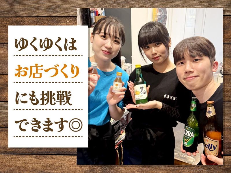 求めている人材 <歓迎条件> ・飲食業経験のある方 └「学生時代に飲食店でバイトをしていた」でもOK! └調理経験はなくてもOK! ・未経験でも飲食店での経験を積みたい・挑戦したい方 <こんな方もぜひ!> ・バイトリーダー経験者 ・チームをまとめた経験がある方 ・フリーターから正社員を目指したい方 ・韓国料理が好き ・お客様と楽しく話したい ・食べるのが好き ・自分の好きを話したい (自分の好きなメニューをオススメしてください◎) オーダーを元気よく ハキハキと伝えてくれると、 スタッフも店内の雰囲気もさらにイイ感じに♪ 「元気に楽しく働きたい!」 っていう方にはピッタリの環境です◎