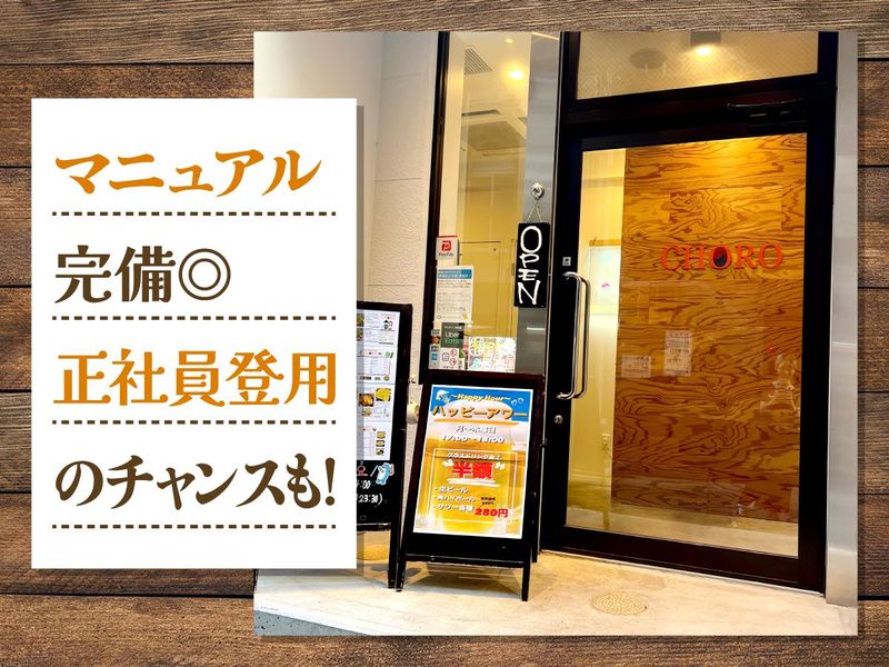 仕事内容 ✅飲食業経験者優遇 (未経験でも意欲があればOK!) ✅フリーターから正社員を目指したい方に! ✅店長もアルバイト出身◎ ✅美味しいまかないあり♪ ✅マニュアル完備◎ ================= K-POPが流れるオシャレな 韓国料理店“CHORO”。 プロスポーツ選手も 来店したことがある人気店で、 『バイトリーダー候補』を募集します! 【具体的には…】 ≪キッチン業務≫ まずは野菜のカットや盛り付けなど、 カンタンな作業からスタート! 慣れてきたら、キンパやチヂミ作り、 お肉のカットなども 少しずつお任せします◎ ≪ホール業務≫ お客様の目の前で サムギョプサルを焼いたり、 タッカンマリをカットしたり、 ポックンパ(炒め飯)を仕上げたり… ちょっとしたパフォーマンスで 盛り上げる楽しいお仕事です! 「すごい!」と笑顔をもらえる瞬間も◎ そのほか、オーダー取りや料理・ ドリンクの提供、火の調整など もお任せします! ≪バイトリーダー候補として…≫ ・スタッフ育成 ・シフト管理 ・お店づくり ・店舗運営全般 なども店長と一緒にお任せしていきます! 【入社後は…】 まずはマニュアルを覚えることからスタート。 いきなり責任の大きな業務を お任せすることはありません◎ はじめは店長(20代・女性)のもとで お仕事の流れを理解しながら、 サポート業務から慣れていってください。 ゆくゆくはバイトリーダー候補として お店の運営にも関われます♪ ================= 【CHOROについて】 カジュアルに本格韓国料理を 楽しめる韓国ダイニング。 サムギョプサルやチヂミ、 スンドゥブなど定番メニューはもちろん、 お酒と相性の良い一品料理も 豊富にそろえています。 店内は入りやすい雰囲気で、 友人同士の食事や仕事帰りの一杯など、 幅広いお客様にご利用いただいています。