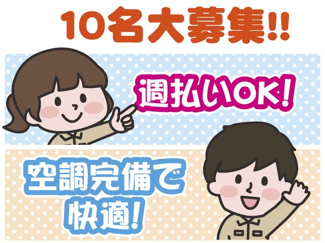 【週払いOK】5名大募集!!/重量物なし/嬉しい日勤・土日休み/空調完備で快適/50代の男性活躍中!