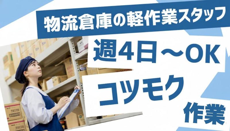 仕事内容 ☆★業務拡大につき増員!大募集!/★☆ ☆★軽作業未経験OK!経験者歓迎!★☆ ☆★週4日~勤務OK ☆★土曜に勤務できる方歓迎★☆ <アルバイト・パート> 週4日~勤務の物流倉庫スタッフ募集! ▼▼▼ お仕事内容 ▼▼▼▼ 物流センターでの 物流倉庫スタッフとして インターネット通販で取り扱う 化粧品やヘアケア商品に関する 軽作業を担当していただきます。 具体的には以下の業務を行います: ・商品の梱包作業 ・仕分け・ピッキング作業 ・荷受け・検品・棚入れ作業 コツコツモクモク作業が 好きな方や、得意な方は大歓迎! フォークリフト免許を お持ちの方は優遇します! 分からないことがあれば、 すぐに先輩スタッフがサポートします! ▲▲▲▲▲▲▲▲▲▲▲▲▲▲▲ ⭐\職場の魅力ポイント/⭐ ✅未経験歓迎! ⇒もちろん事務経験者も大歓迎! スキルアップできる環境です! ✅週4日~勤務(土曜含む) ✅仲間との交流! ⇒スタッフ同士の仲が良く、 楽しい職場イベント (BBQやハロウィンなど)も 盛りだくさんです! ✅取り扱い商品! ⇒巷で人気の美容化粧品や ヘアケア商品を多数扱っており、 商品の流行に敏感な方にピッタリ!