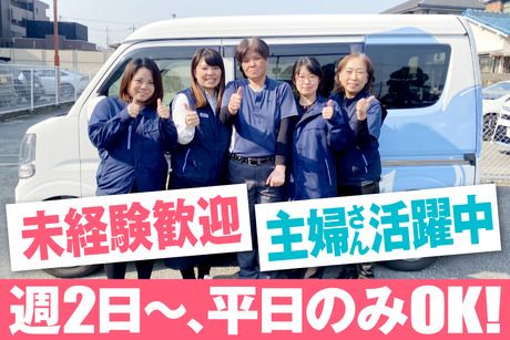 仕事内容 店舗・事業所・病院などの清掃作業 店舗や事業所、病院に伺い、 床掃除やエアコン掃除などを行います。 2~3人1組になって1日2件程訪問します。 1件につき約2~3hの作業になります。 未経験スタートのスタッフ多数活躍中です! あくまで補助作業なので専門知識などは必要無し。 お掃除のやり方など、入社後に丁寧に教えていきますので心配しないでくださいね! 研修会・勉強会などがあり、サポート体制も抜群です◎ マニュアルがあるので、安心して始められますよ◎ 週2日~OK!平日のみの勤務で無理なく働けます 週2日~5日で希望日数での勤務が可能です。 土日祝休みの平日のみですので、プライベートと両立して 無理なく働いて頂けます。