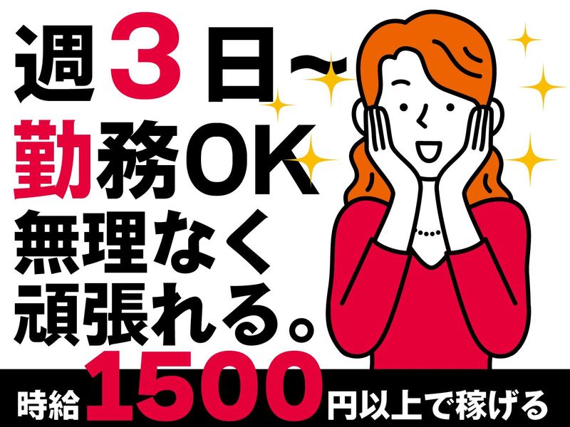 時給1,500円以上 給与詳細 基本給:時給 1500円 〜 *交通費支給(規定有)