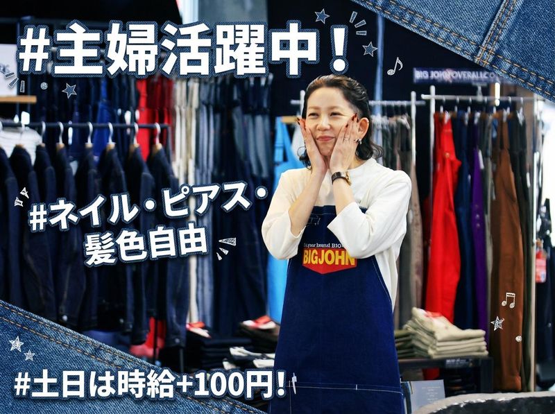 仕事内容 ◤ ̄ ̄ ̄ ̄ ̄ ̄ ̄ ̄ ̄ ̄ ̄ ̄ ̄ ̄ ̄ ̄◥ デニム好きなら、一度は働きたい \日本初の国産ジーンズブランド/ ◣________________◢ ここは、日本のデニム文化が生まれた街。 ジーンズの聖地・児島にある、 「BIG JOHN」児島本店でのお仕事です! 当社は、日本で初めて国産ジーンズを 作ったブランド。さらに世界初の “ジーンズの洗い加工”を生み出すなど デニムの歴史をつくってきたメーカーです。 創業80年以上で、今もなお世界中の ファンに愛されています。 【お仕事内容】 ◎ レジ対応 ◎ 接客・採寸・サイズ選びのサポート ◎ デニム製作体験の補助 デニムや販売の知識はゼロでOK! 「デニムが好き」 「ファッションが好き」 その気持ちがあれば スキルや経験は必要ありません! \働くポイント/ ■ 髪色・ネイル・ピアス自由 ■ 制服ジーンズ支給あり ■ 社割でデニム購入OK ■ アルバイトから正社員も目指せる 好きなファッションを楽しみながら働けます。