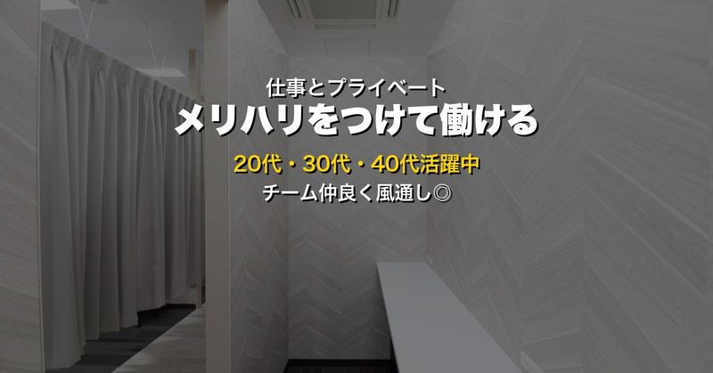 職場環境 ✅仕事とプライベートで メリハリをしっかりつけて働けます。 ✅スタッフ割で自分磨きも! ✅駅近で立地も良し◎ ✅各種美容系外部集客媒体で 高い口コミ評価を獲得しています! 喫煙所:なし(敷地内全て禁煙)