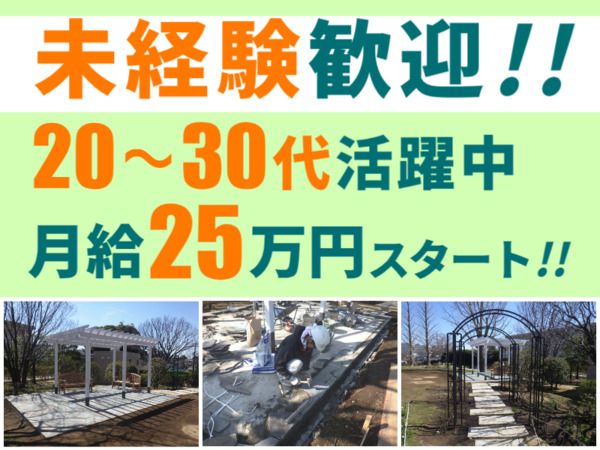仕事内容 横浜市内の多くの公園で、遊具や樹木の管理、マンションの緑地管理、個人庭の設計監理をお任せします。 「造園」というと、何か難しく感じるかもしれませんが、 基本は、「木を切る」「草を刈る」の2つ! *【 はじめは 】* まずは現場を見てもらい、先輩たちがどんな仕事をしているか見ててください! あなたにお願いするのは、切って落ちた枝をまとめたり、草刈りの掃除をするお仕事。職人の手伝いをします。 そのうち慣れてきたら、草刈り機や刈込みの機械を使っていきます。 新人さんが来てくれたら、何でも聞きやすいように、できるだけ年齢の近い先輩をつける予定です! *【 一日の流れ 】* 集合場所に集まり、現場へ向かう前に今日のスケジュールの確認! はじめは現場に着いたら見学! 基本、3人1組で先輩と会話しながら向かい、作業は1日で終わります。 1日で終わる現場が中心ですが、団地の管理は数日~数週間かかることも! ちなみに、造園だけでなく土木(公園の仕事)もしています。 神奈川に造園会社は沢山ありますが、土木もやるところは少ないので、うちは同時にできる事が強み! 「あの公園は俺がつくったんだ!」など、自慢が彼女や家族にできます(笑) *【現場について】* 横浜市を中心に、戸塚区、都筑区、川崎市などの神奈川エリア中心! および東京都もございます。 *【 一緒に働くスタッフは 】* 20代・30代・40代・50代の幅広い世代が活躍中です。 一番の若手は23歳3年目!女性スタッフは明るくてみんなのお母さんのような存在! スタッフの年齢は幅広いですが、休憩時間も一緒にご飯食べながら、 いま流行ってるアニメ映画とかバズってる動画とかで盛り上がってます! 20代~50代までが同じ話で盛り上がれる感じの仲の良さ!(笑)若い現場です!(笑)