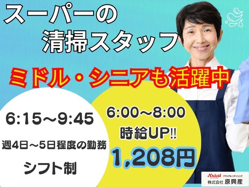 週4日~5日程度の勤務!6:15~9:45\時給1,208円も可!原信宮関店の清掃スタッフ募集/