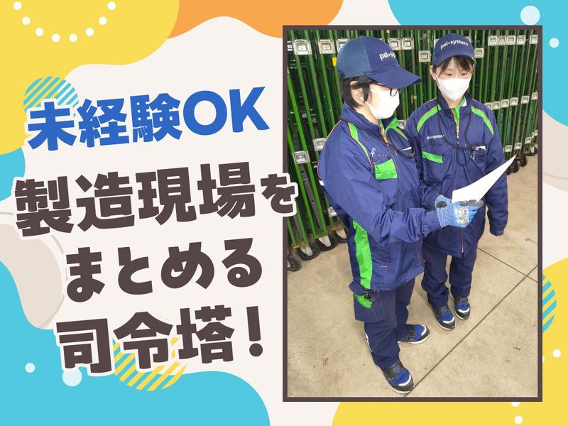 仕事内容 *残業ほぼなし!自分の時間を大切に! *金土固定休み!プライベート充実可能◎ *車通勤OK!無料駐車場も完備で快適! *安定の生協グループで長期安定! 【仕事内容】 パルシステムの食品製造センターにて、パートスタッフのシフト管理や製造工程の管理をお任せします。 <具体的には・・> 〇スタッフへの作業指示やシフト作成・管理 〇製造ラインの進捗確認とフォロー業務 〇入荷食材の数量確認や品質チェック 〇製品の出荷前確認(破損や過不足がないか等) 〇現場の安全管理や業務効率化の提案 ※食品加工などの実務は行いません。人員配置やパートさんとの連携がメインの業務です。 <入社後について> 入社後は先輩が業務を一つひとつ丁寧にお教えします。製造ラインの作業はなく、人との関わりがメインとなるため、まずはパートさんとコミュニケーションを取ることから始めましょう。 少しずつ現場の雰囲気に慣れながら、全体の流れを把握していけば大丈夫!残業もほぼないため、心身ともに無理なく業務を覚えていける環境が整っています。 【実務作業なしで負担減】 自ら製造ラインに入って作り続けるのではなく、全体を見渡し、現場が円滑に回るようサポートや調整を行う司令塔のようなポジションです。 体力的な負担が少なく、無理なく長く続けやすい環境です。 【残業ほぼなしの好環境】 日々の残業はほとんどありません。 定時で退社できる日が多く、プライベートの時間をしっかりと確保できます。 仕事終わりの予定も立てやすく、ワークライフバランスを重視する方に最適です。 【安定の生協グループ】 パルシステムグループの安定基盤があるため、腰を据えて働けます。賞与年2回や家族手当、退職金制度など待遇も充実しており、将来を見据えて安心して働ける環境が整っています。 【車通勤で快適アクセス】 新治センターは無料駐車場を完備しており、車通勤が便利。満員電車のストレスなく、自分のペースで快適に通勤できます。交通費(ガソリン代)も規定内で全額支給します。 【気さくな仲間が活躍中】 現在、計5名の生産管理スタッフが在籍しています。アルバイトから正社員になったメンバーや新卒入社のメンバーなど、様々な経歴を持つ仲間が在籍。みんなチームプレーを大切にしながら働いています。