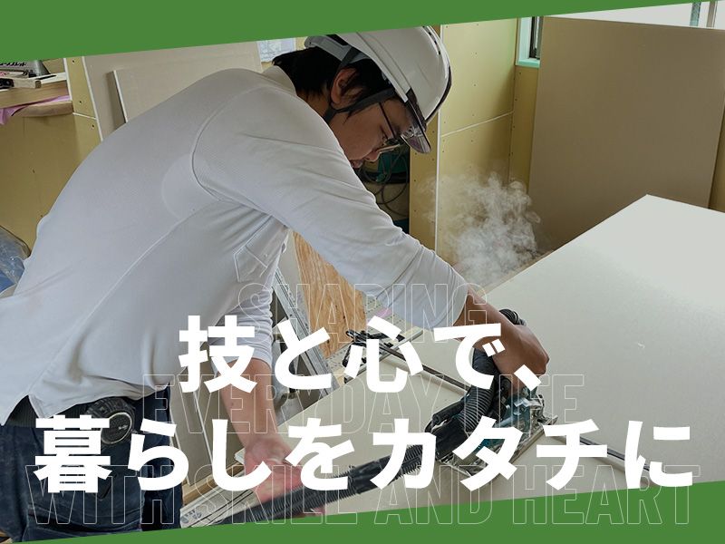 アピールポイント \培った経験をより発揮できる/ 自分が大工として関わった住宅が、 実際に形になり、 お客様に喜んでいただける のが最大のやりがいです。 また住まいづくりの全工程、 を一貫して学ぶこともできます。 \スキルを磨ける/ 業務やリーダーシップなど さまざまなことを学べる研修を年3回実施。 社内勉強会も定期的に行っているため、 どんどんスキルを磨けます! 大工塾や大工学校に会社負担で通える! 大工と現場監督の勉強を並走しながら 独り立ちまで1年間しっかりと教えます。 \スキルを磨くほど給与も上がる/ スキル向上のため資格を取得した分 手当を支給。 スキルや経験を積めば役職についたりと キャリアアップも目指せます!