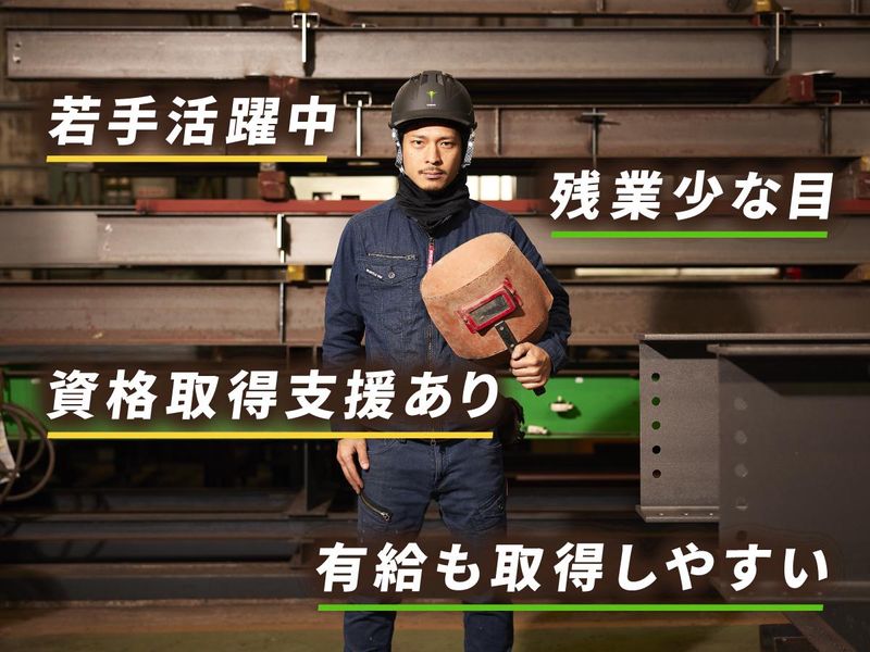 仕事内容 = 鉄骨の溶接・組立にチャレンジ!= 未経験から”職人”を育てる会社。 あなたの技術が未来の建物を支えます。 \ イチコウで働く魅力 / ■ 創業57年目の安定企業 ■ 業績も右肩上がり! ■ 転勤なしで、長く安定して働ける ■ 未経験OK!教育にも力を入れています ■ 残業少な目でプライベートも充実 ■ 有給消化率高め! ■ 頑張りは、しっかり給与に反映します ■ 社員全員が技術向上に意欲的で、切磋琢磨できる ■ 製造だけでなく、設計や施工へキャリアチェンジも可能 ー ■ 入社後まずは 鉄骨建築・鉄工製品を製造するために、設計図面をもとに「切断・穴あけ・組立・溶接」などを行います。 未経験の方は、道具の名称を覚えるところからスタート! 基本的には先輩がマンツーマンで教えるので、分からないことがあれば何でも質問してくださいね。 【 目指すポイント 】 ① 手を動かさないこと 溶接のビード(溶けた金属が固まった跡のライン)をまっすぐ均一にするには、脇をしめて手ブレを抑えながら進めることが重要。 トーチや溶接棒の角度を一定に保つこと、アークの距離(溶接棒と母材の距離)を一定に保つことを意識しながら、1年ほど練習していきましょう。 ② 出荷前検査に合格する製品を作ること 製造した鉄骨は、出荷する前に 必ず超音波探傷検査(UT検査)を行います。まずは自社にて、割れや空洞がないかなどを確認。 さらに外部の検査員(第三者機関や発注者側の検査担当) が立ち会って確認し、検査に合格することで初めて出荷できます。 見た目はもちろん大切ですが、それは確実な安全性があってのこと。 美しい見た目で、なおかつ検査に合格する製品を作れるようになったら一人前です◎ ー ▶職人ワザを、最短で習得できる?! 教育係としてOJTを担当する、入社5年目・先輩社員のYさん。 前職でも溶接の経験があり、現在はたくさんの仕事をテキパキこなすベテランです。 一般的には3年かけて覚えることを、前職時代に2年で習得したYさん。 そんな彼は、あらゆる溶接方法を試行錯誤し、最もスピーディーで効率的なやり方にたどり着きました。 当社ではその職人ワザを、入社してからスグに学べます! 「一定の経験を積んだら教える」「自力でたどり着くまでは教えない」なんてことはありません◎ 先輩がゼロから丁寧に伝授するので、「スピードと品質を両立させる方法」を「最短の時間」で習得できます。 もちろん技術が必要な仕事のため、1ヶ月や2ヶ月で身に付くわけではありません。 自力で一通り進められるようになるには、3年ほどかかります。 しかし、先輩の教えに従って一つずつ覚えていけば、確実に「手に職」がつく仕事です。 「今の技術をもっと磨きたい」という経験者の方はもちろん、「ゼロから技術や知識を身につけたい」という未経験の方もピッタリ! 何より、形あるものを作る「モノづくり」の仕事は、出来上がったときの達成感もひとしお。 当社は製造から納品(組立)まで一貫して行っているため、「自分が作ったものがどんな姿になるのか」を最後まで見届けられるのもやりがいの一つ。 手掛けた製品の出来栄えも向上していくため、自身の成長も目に見えて実感できますよ。 ぜひ、ベテランの先輩のもとで「溶接工」に仕事をしてみませんか? ー ■ 会社について 1968年に創業し、今年で57年目を迎える当社。 鉄骨建築の鉄骨加工工場としてスタートし、現在は鋼構造物工事業のほか、建築工事(鉄骨造・木造)やリフォーム工事まで幅広く担う「総合建築業」へと成長しました。 地元企業をはじめ、地域の方々からの信頼も厚く、売上は右肩上がり。2024年には国土交通大臣認定工場 Rグレードを取得しました。 「感動するモノづくりを」という信念と、若く勢いのある3代目社長のもと、さらなる事業拡大・売上増加を見込んでいます。 【 事業内容 】 ・重・軽量鉄骨工事 ・新築工事 ・リフォーム工事