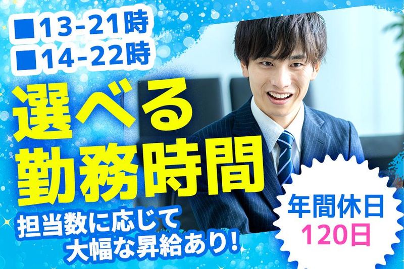 固定時間制 勤務時間詳細 実働時間:1日あたり7時間 平均勤務日数:1ヶ月あたり20日 〜 22日 13:00~21:00 14:00~22:00 ※上記2パターンから選べます。 ■実働7h、休憩1h \営業職でも午後からのスタート!/ ナイトワークのお店がクライアントのため、 通常の営業職とは違い“午後から勤務”がスタンダード。 出社は13:00または14:00からなので、 朝の満員電車とも無縁です!!これが一番嬉しい! 生活リズムをゆったり保ちながら、 営業としてしっかりキャリアを積めるのが大きな魅力! 「朝が弱い」「午前中を有効活用したい」という方にもピッタリです。