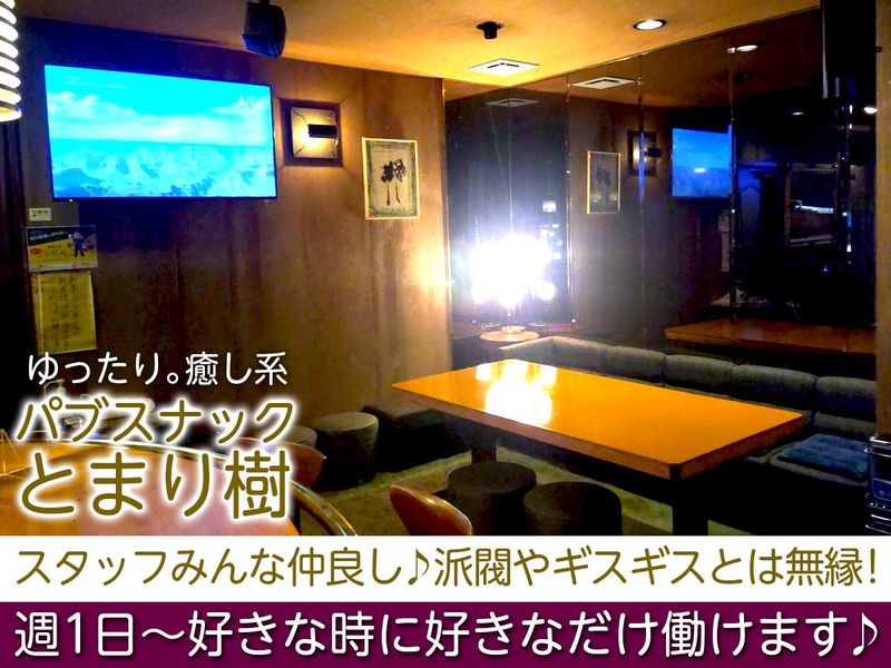 仕事内容 ━-━-━- \ナイト経験者さん大歓迎!/ スタート時給優遇あり♪ ━-━-━- 「派閥や人間関係にうんざり…」 「ノルマ・強制面倒くさい!」 そんなキャバクラ、ガールズバー 卒業生も大歓迎☆ 『パブスナック とまり樹』は 女性のお客様も多く訪れる ほんわか癒し系のお店です♪ メンバーもみんな仲良しで、 「1対1の接客」というよりも お店のみんなで一緒に ワイワイ盛り上がる雰囲気◎ ナイトにありがちなギスギスとは 無縁の和やかな空気が自慢です♪ ━-━-━- お任せするお仕事 ━-━-━- お客さまと一緒に楽しく おしゃべりしたり、カンタンな お酒づくりをお任せします♪ 難しいお仕事は一切ありません! 経験者さんならあっという間に 馴染めちゃいますよ☆ ◎カウンター内で座って 盛り上がれます! ◎キャッチやビラ配りなし! ◎もちろん未経験さんも大歓迎! ナイトデビューも応援します(*^▽^*)