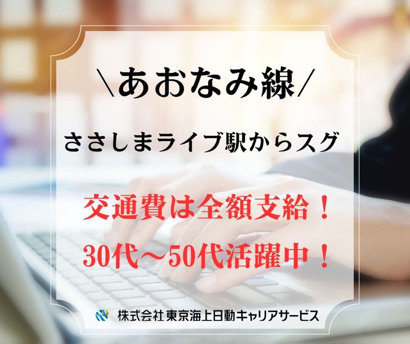 アピールポイント: ★安心・安定の大手企業でゆくゆく正社員になれるチャンスあります! ★土日祝日はお休みで、カレンダーの暦通りのお休みです。 ★とても綺麗なオフィスビルです ★休憩60分間、しっかりお休みが取れます ★ビル中にコンビニや飲食店がありますので便利です♪ ★休憩室にはレンジ・冷蔵庫がありますので、お弁当の持ち込みも可能です ★オフィスカジュアルな格好で勤務OK! ★髪色自由!ネイルもOK! ------------------------- ✅嬉しいPOINTたくさん! ・履歴書不要!簡単に応募OK! ・ささしまライブ駅から徒歩1分!名古屋駅からも徒歩10分圏内(交通費支給) └バスも沢山出ているので公共交通機関での通勤もしやすいです。 ・交通費も全額支給 ・禁煙オフィスで快適勤務 ・社会保険完備で安心して勤務できます ・PC入力や電話対応などのご経験でOKです。 └接客の経験がある方も、もちろんお待ちしています! ・残業ナシ! └プライベートとの両立がしやすい職場です。 └本当に定時で退社できます -------------------------- ✨おすすめポイント ✅時給1,600円+交通費も全額支給! ✅一定期間ご勤務いただきましたら、正社員登用試験に応募いただくことが可能です。 └働きながらスキルアップもできて、社内の雰囲気も知ることができます。 └正社員チャレンジできる! ✅人気の名駅エリア!安定の大手企業です。 ✅サポート体制も充実! └未経験歓迎♪ ✅ネイル&髪色OK! ✅オフィスカジュアルでの勤務です。 ------------------------- ✅ブランクから不安のある方も安心の研修制度! ※研修をご希望の方は、是非ご相談ください! ✨フォローばっちり研修制度 ★★配属前の研修が3日間あります★★ ◎保険用語、実務で使用する用語を学びます ◎保険商品について学びます。 ◎保険実務の流れ・やり方・ルールを学びます ◎社内システムの機能・操作を学びます ◎配属後も担当社員からのサポートあり! ★★研修中も給与支払いがあります★★ ------------------------------ ✅このお仕事についての【Q&A】 Q.『オフィスカジュアル』とありますが、どのような服装で勤務したらいいですか? A.ジャケット着用の必要はありませんが、ブラウス+パンツスタイルや動きやすいスカートなどでの勤務になります。 Q.長期安定的に働けますか? A.今回の募集は、長期勤務できる方を希望しているポジションです。 働きながら正社員チャレンジの可能性もあるため、安定して働きたい!損保の知識を増やしたい!という方にオススメのお仕事です。 Q.お昼休憩の時は、皆さん、どのようにランチしていますか? A.職場のみなさん、お弁当を持ってきて自席で食べたり、休憩ルームで休憩しています。外にランチに行くこともあるので気分転換になりますね! -------------------------- ~応募後の流れ~ 1)面談(web/お電話) 2)お仕事紹介 3)就業決定 4)就業スタート! ★引き続きしっかりフォローいたします★ -------------------------- 【ご来社不要】 ご自宅からリモートでかんたん登録 お気軽にご応募下さい!